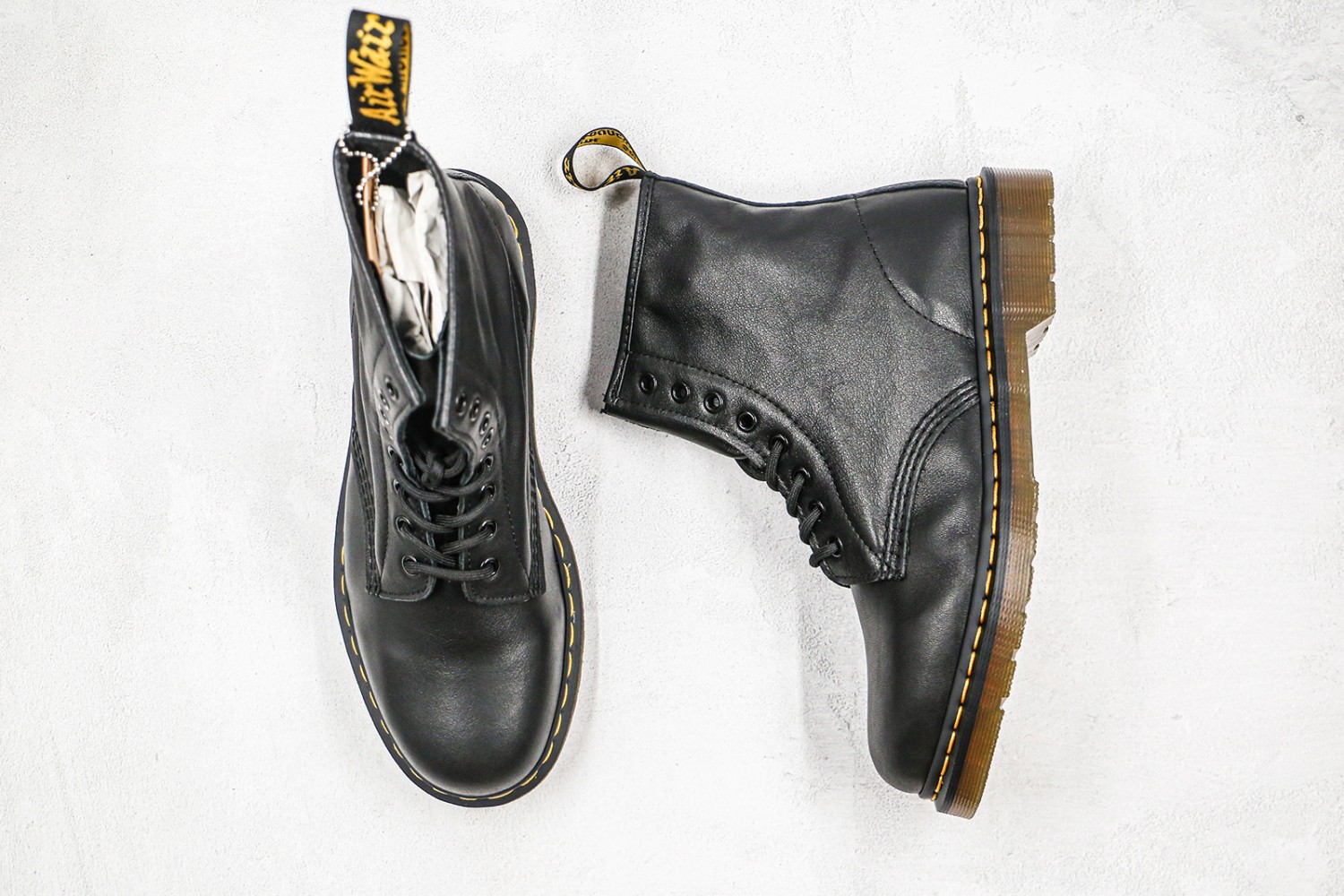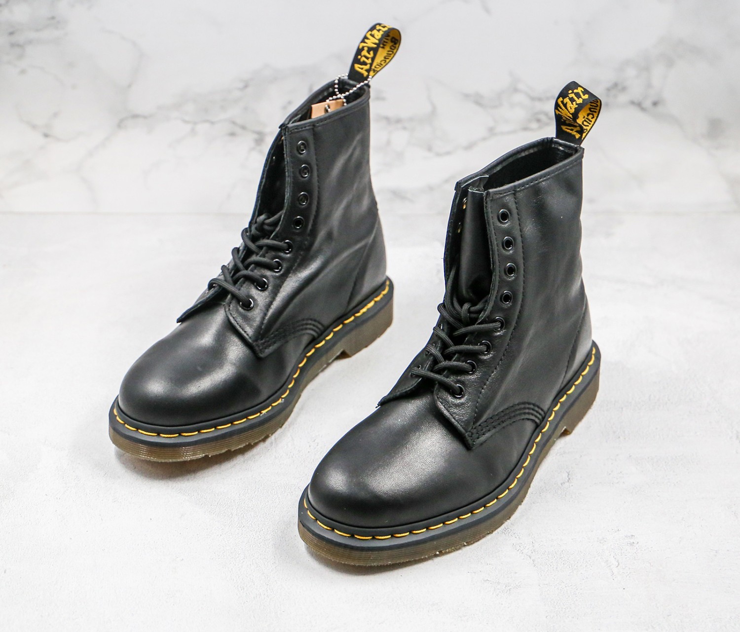 - Detailed with two arrow-shaped ski hooks and an external heel counter, the boots have flat cotton laces, gunmetal eyelets and unmistakable welt stitching and heel loop.
