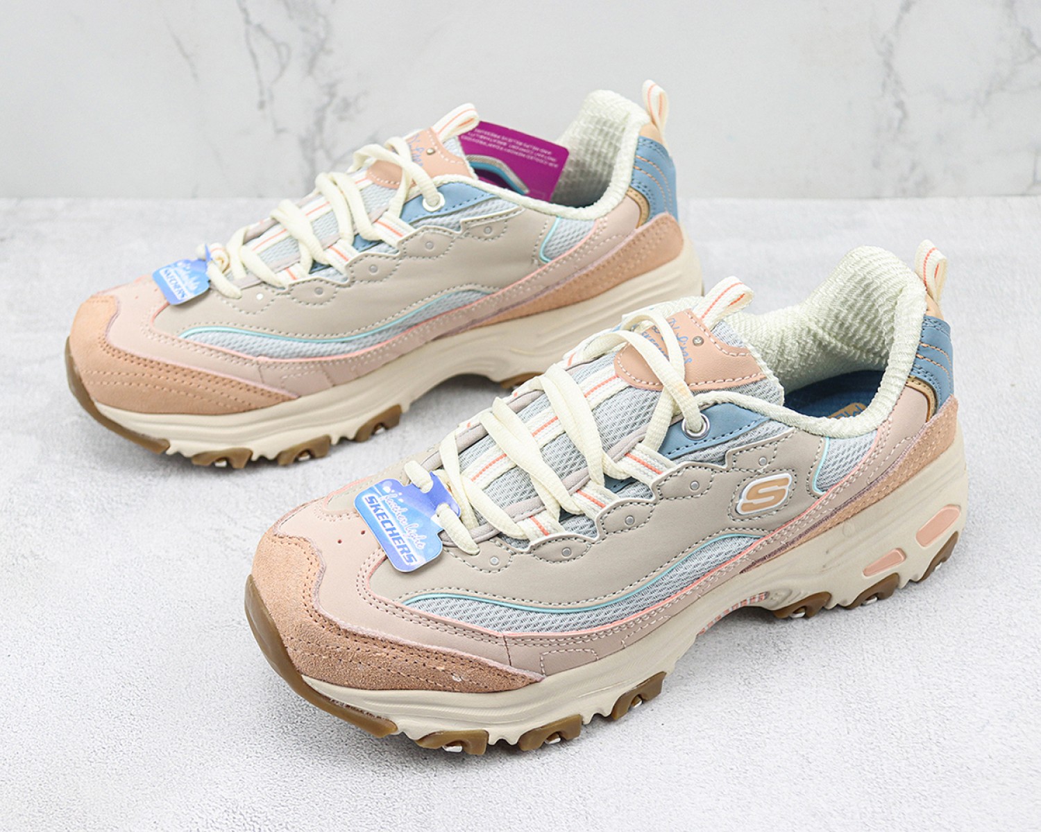 • REVITALIZED CLASSIC STYLE: Put your best foot forward in the Skechers D'Lites - Fresh Start sneakers for women, featuring a sporty lace-up design with a smooth leather and synthetic upper.