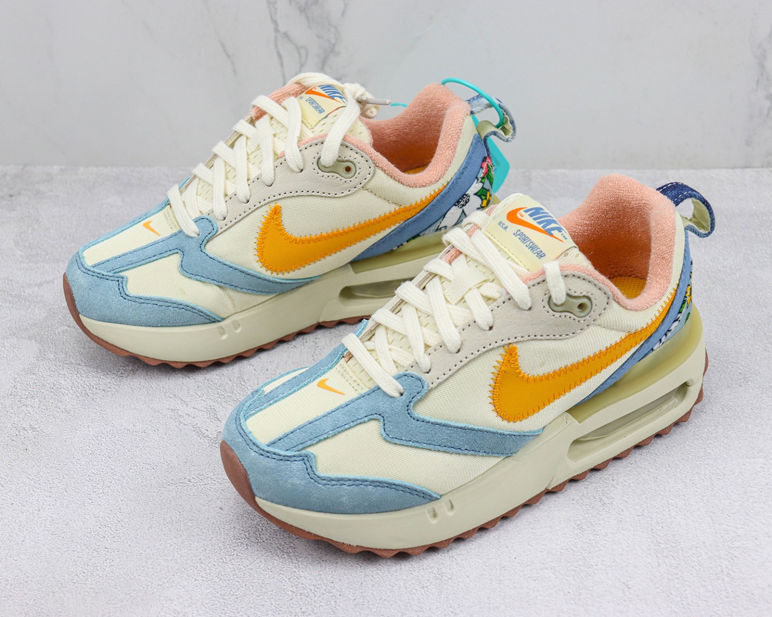 • Air Max Dawn is made with at least 20% recycled material by weight. Synthetic suede and textile materials blend vintage running vibes with fresh details.